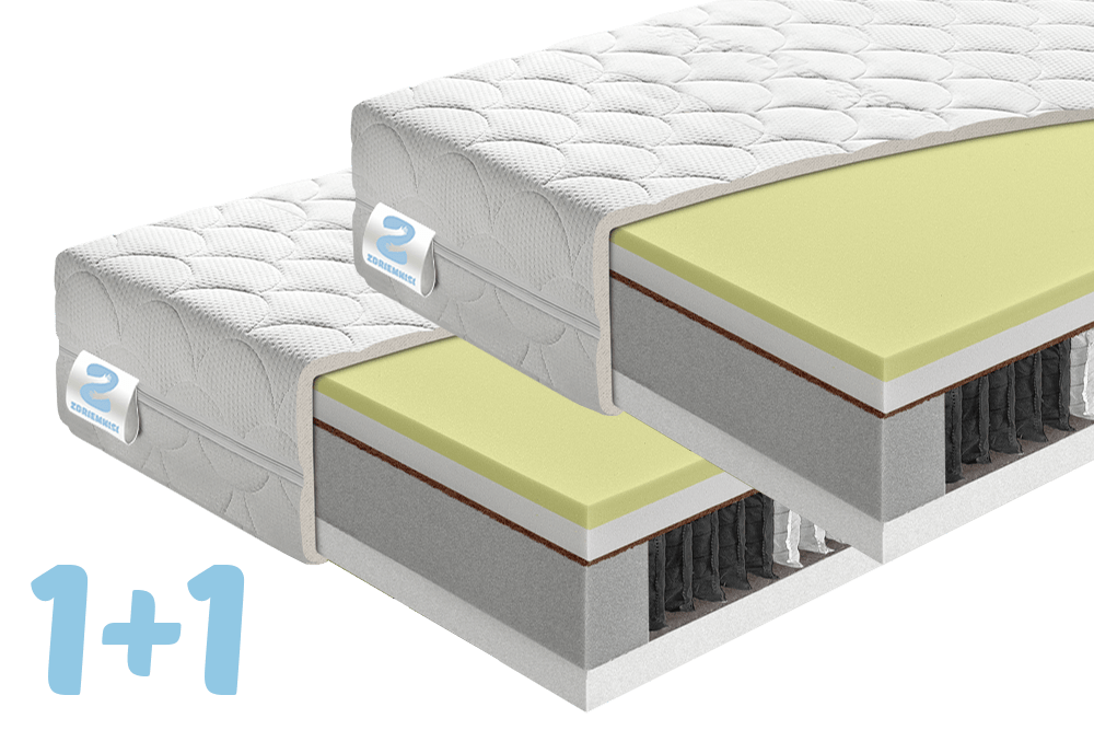 Pár vysoko komfortných ortopedických matracov so 7-zónovým taštičkovým jadrom AGRO MULTIPOCKET s najvyšším počtom taštičkových strún pre maximálnu schopnosť kontúrovania vášho tela v akejkoľvek spánkovej polohe. Luxusná vrstva pamäťovej peny spolu s výškou až 25 cm sú zárukou dokonalého komfortu aj pre osoby trpiace bolesťami pohybového aparátu, chrbtice či seniorov v pokročilom veku.
