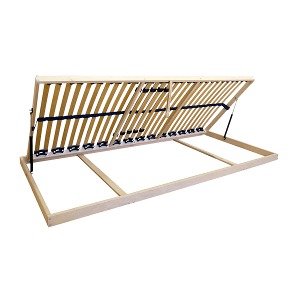 Nepolohovateľný lamelový rošt umožňuje vďaka bočnému výklopu prístup do úložného priestoru postele. Rošt má systém dvíhania z boku vyhotovený s piestovým vyklápaním. Dostatočnú pevnosť zabezpečuje spevňujúci textilný popruh a pre lepšie nastavenie tvrdosti je k dispozícií až 5 zdvojených lamiel.